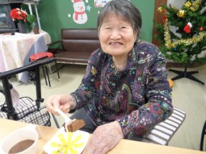 おやつにはクリスマスらしいケーキがふるまわれ、皆様に「美味しい」と好評でした!